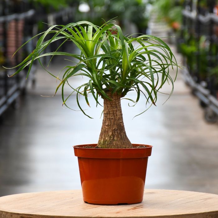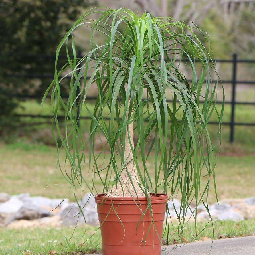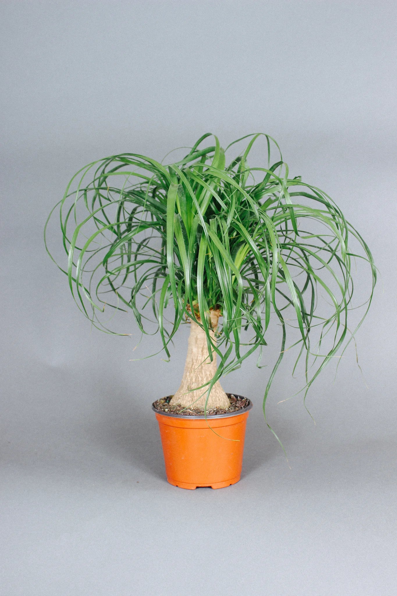 - Description: The ponytail palm is an evergreen perennial native to Eastern Mexico. It has become an ornamental plant due to its ability to thrive indoors and retains water through its swollen trunk. Much like a palm tree this plant can grow to be 3 feet tall in its maturity.