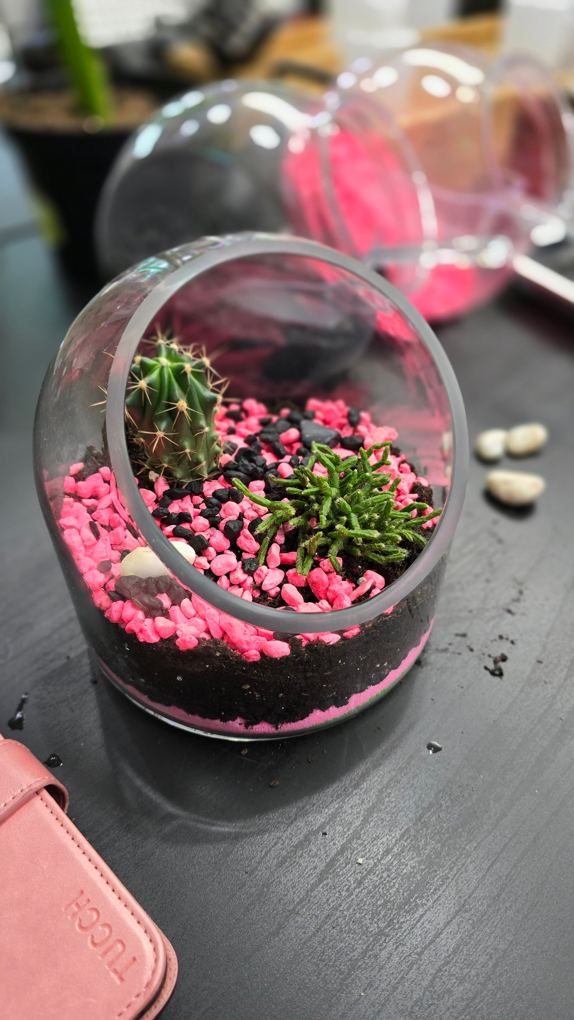 Gather your friends and get down to business building your very own terrarium! Let your creativity soar and build a one of a kind mini biome. Lean on our instructor for advice and assistance with any questions you might have. All you need is an open mind to create a masterpiece! $20 includes our bubble glass with sand, rock, soil, toppers and one plant of your choosing!